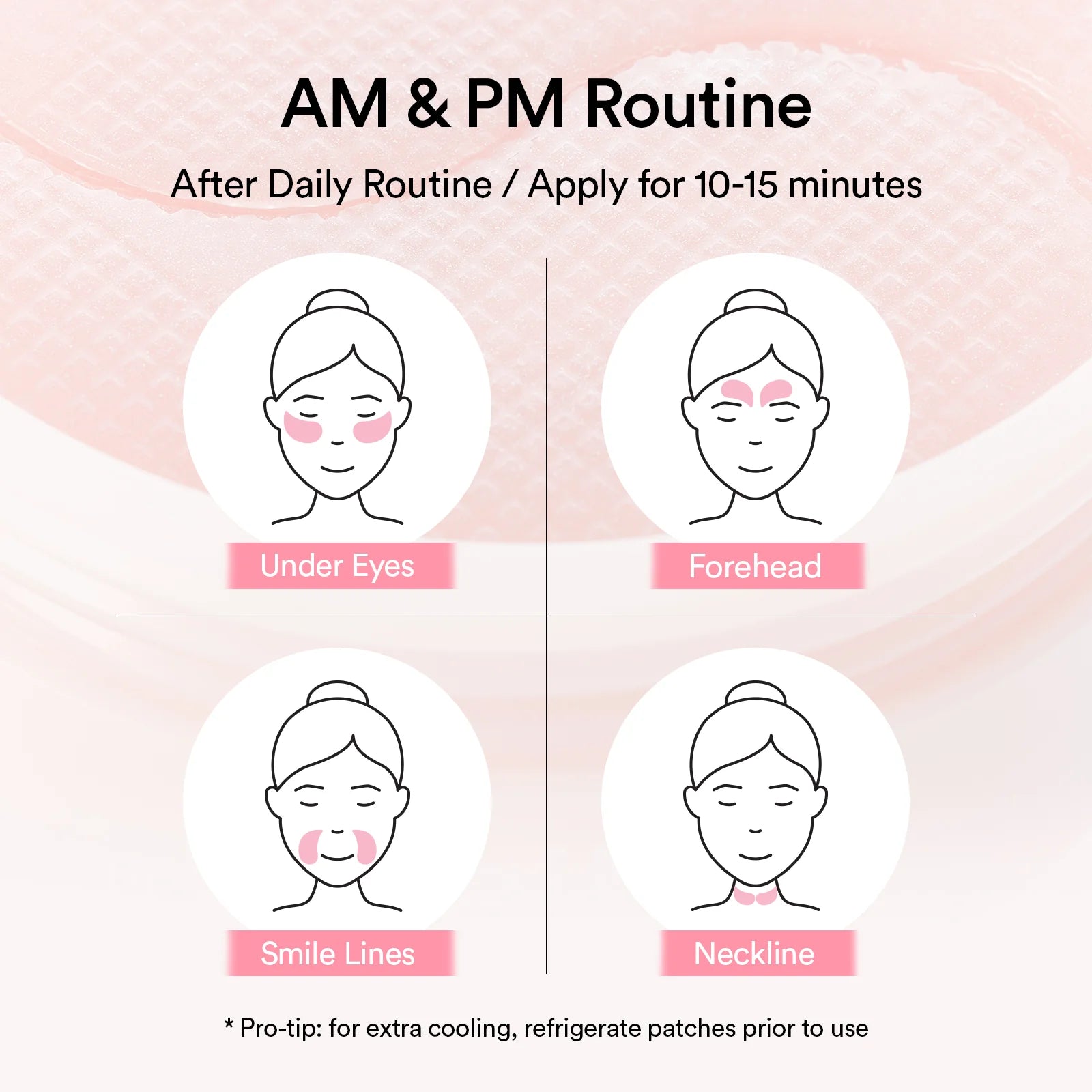 Coloque el parche en la zona debajo de los ojos y retírelo después de 10 a 15 minutos.