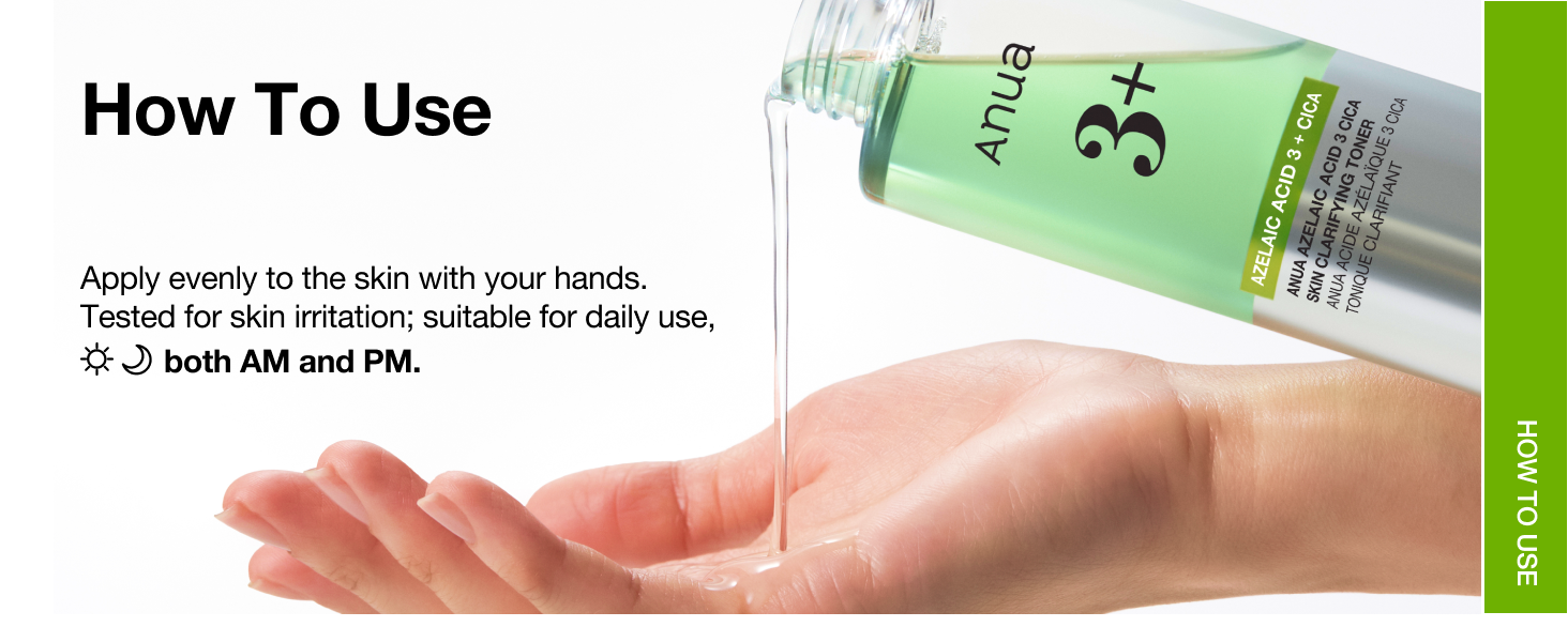 El Tónico Aclarador ANUA con Ácido Azelaico 3 Cica se recomienda para quienes sufren de sensibilidad cutánea recurrente, textura áspera causada por células muertas o preocupación por los poros dilatados y el exceso de sebo.
