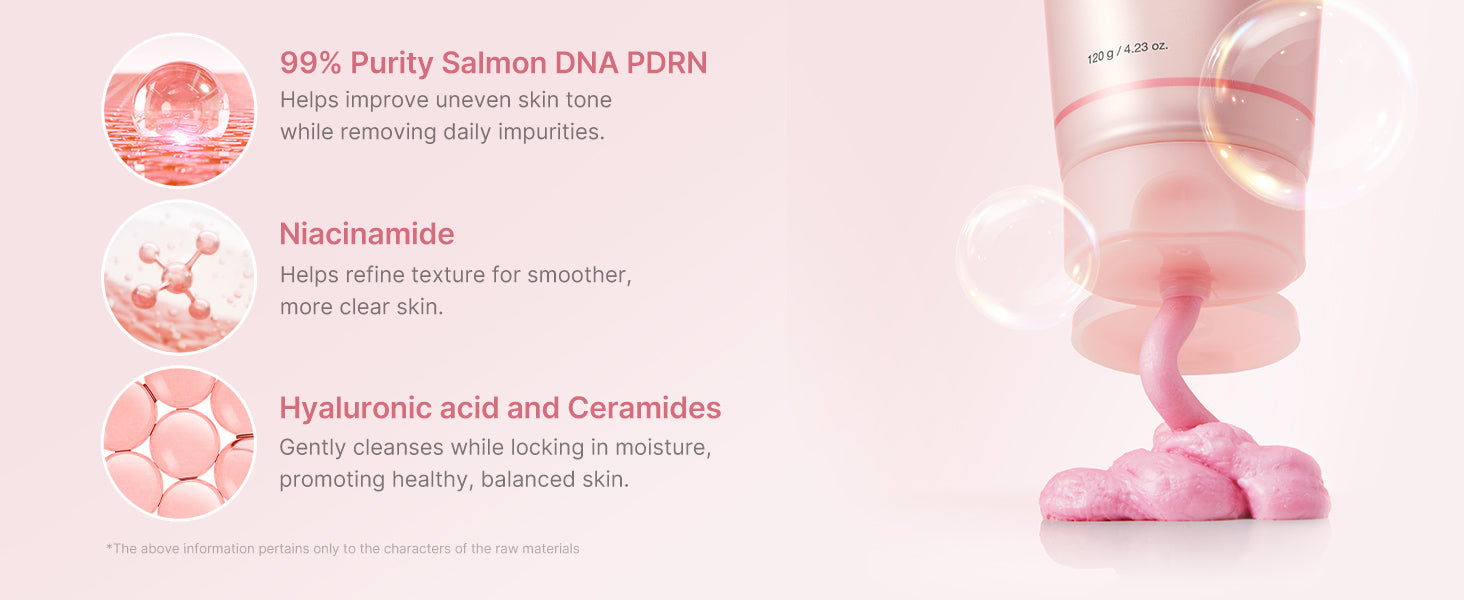 Formulado con PDRN de ADN de salmón con un 99 % de pureza y niacinamida, este limpiador ayuda a mejorar el tono desigual de la piel a la vez que elimina las impurezas diarias. Deja la piel suave, equilibrada y radiante.